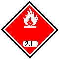 ![]() 易燃?xì)怏w(第2類)或者易燃液體(第3類) UN Transport symbol for inflammable gases (Class 2) or liquids (Class 3) |